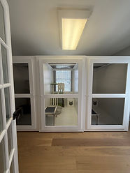 A generously sized (4X6), multi-level suite thoughtfully designed for up to three feline family members from the same household. Featuring ample vertical climbing space, cozy lounging & hiding nooks, and fluffy bedding, this suite is ideal for active, social, or bonded cats who love to explore and relax together. Option for a window view suite based on availability.